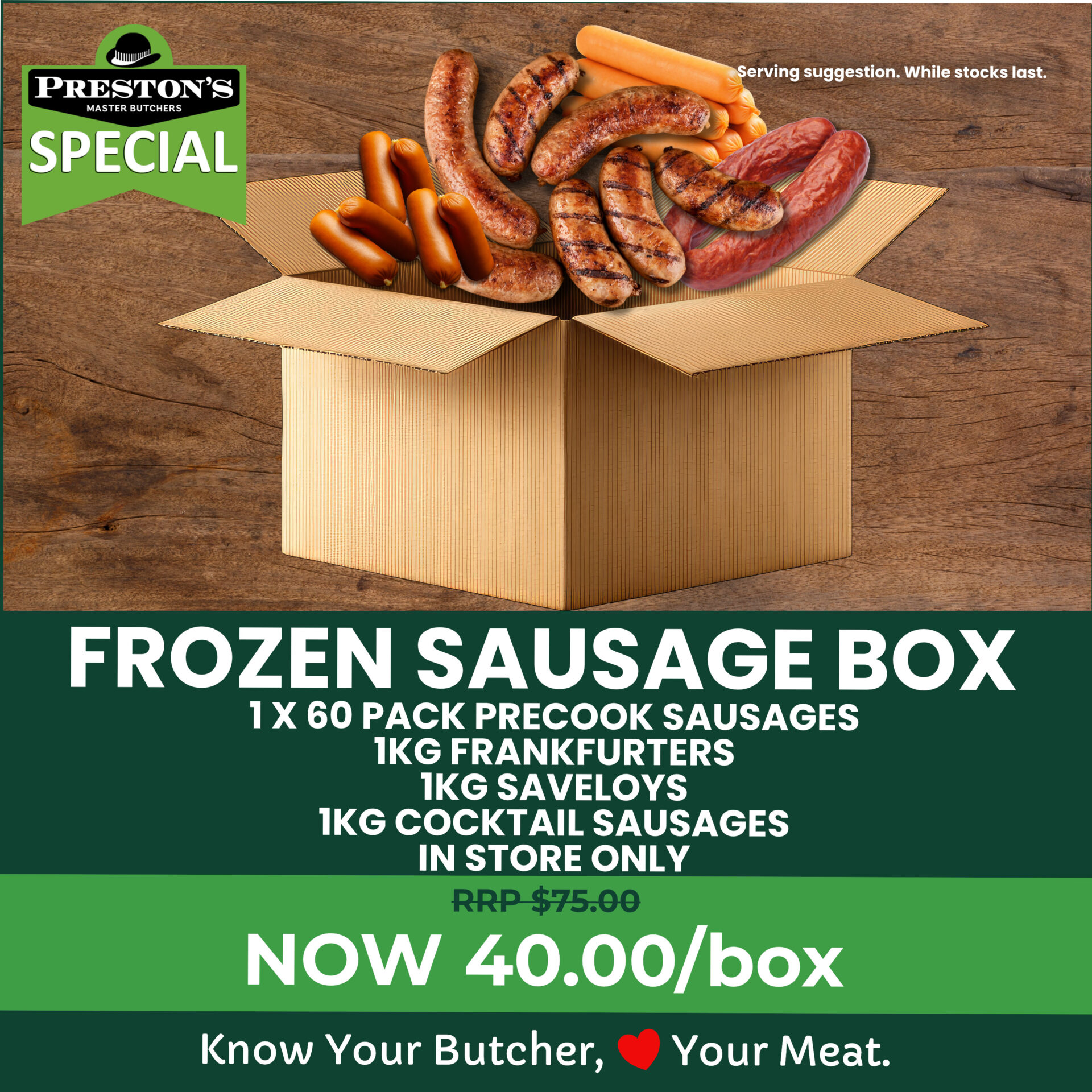 *Frozen Sausage Box & Pork Mince available in store only. Delivery date must be before 5 April to receive product at special prices. Nationwide delivery now available (no rural delivery available).