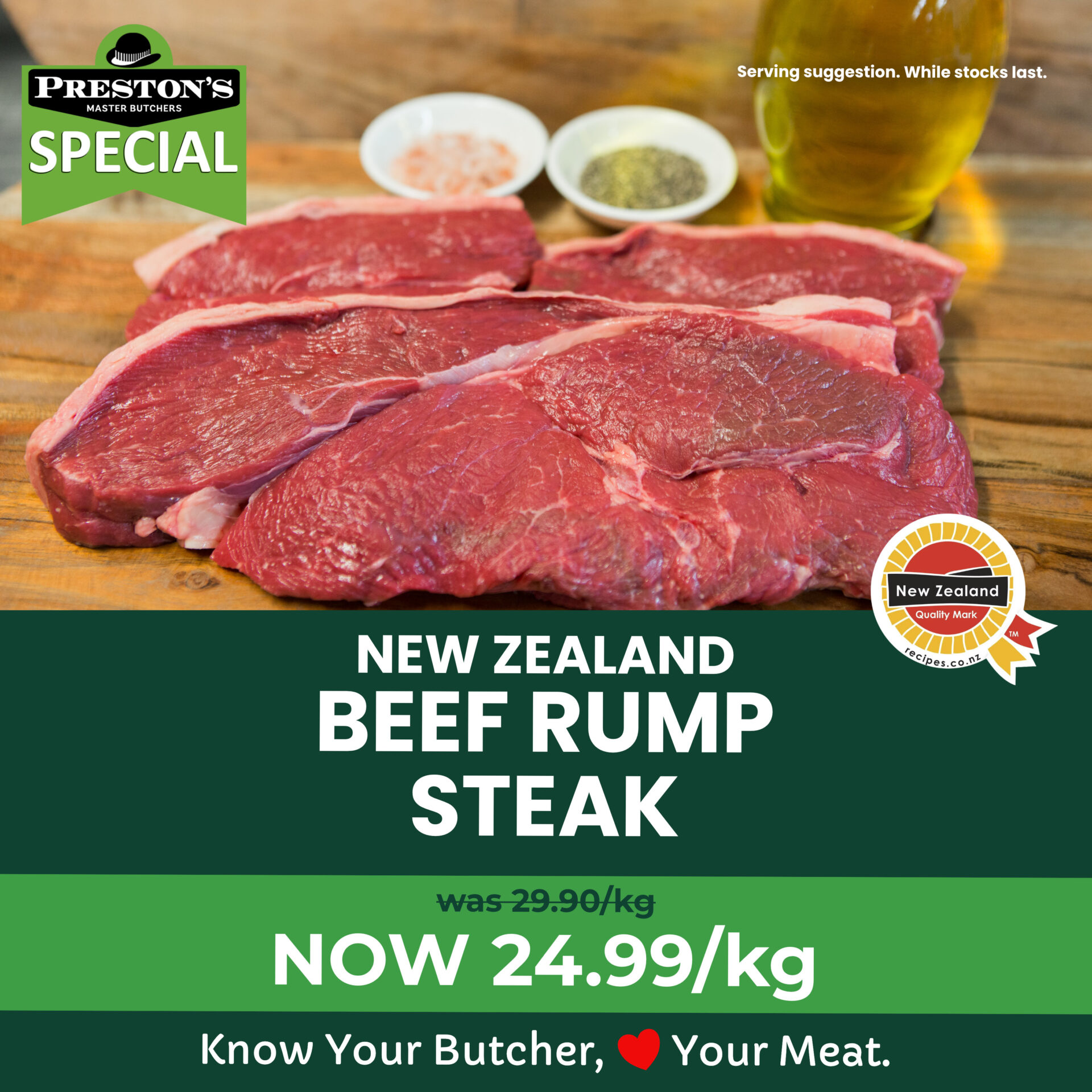 🥩 New Zealand Rump Steaks – $24.99/kg