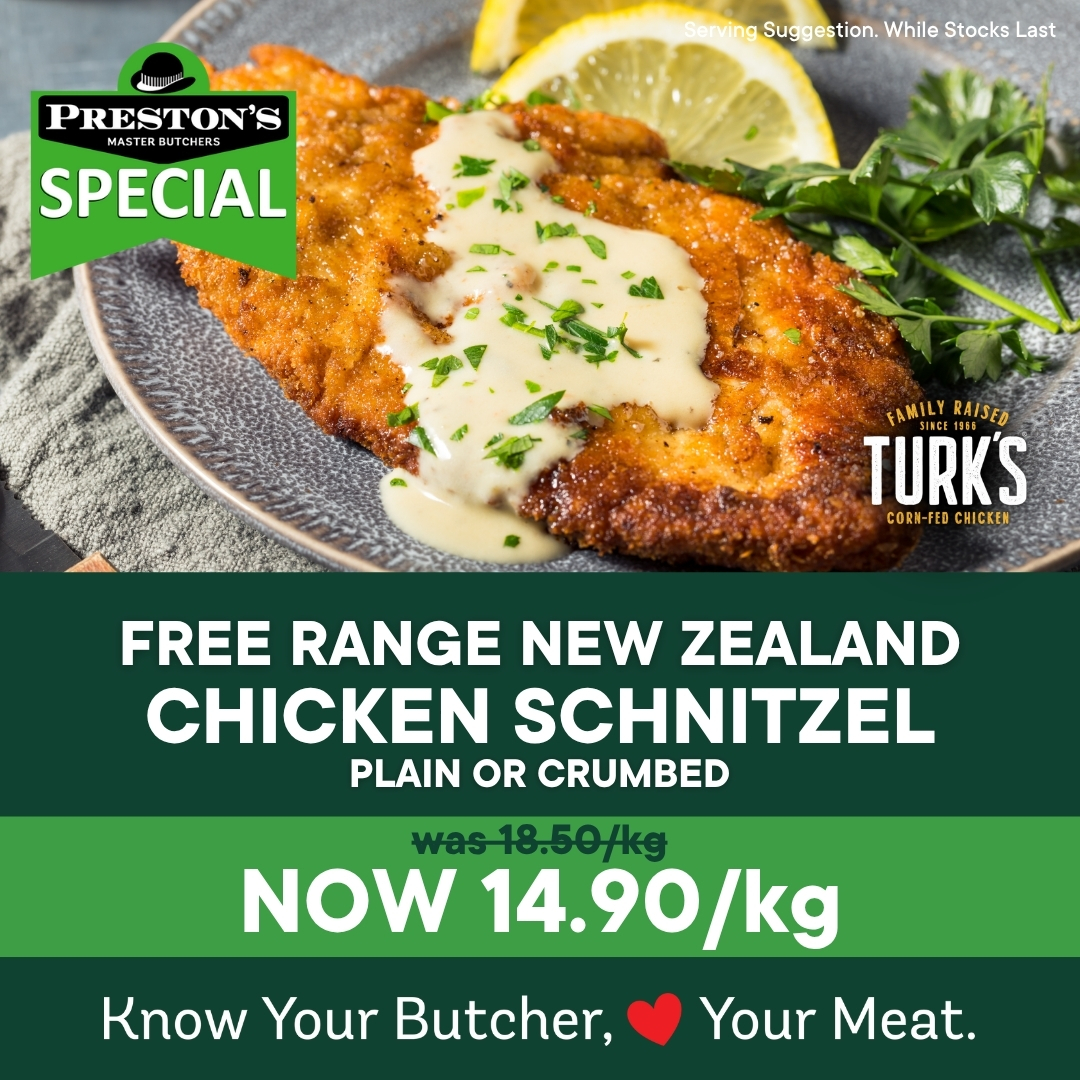 🐔 New Zealand Free Range Chicken Schnitzel – 14.90/kg